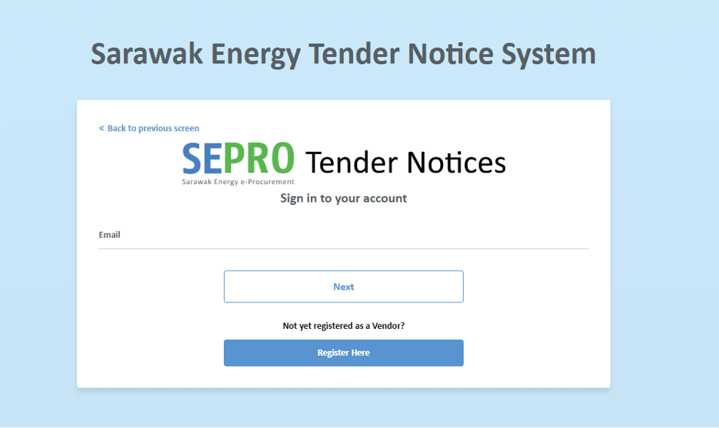 Registered vendors will need to input their SEPRO Ariba account registered email for login purposes. OTP code will be sent to the email and validation purposes.