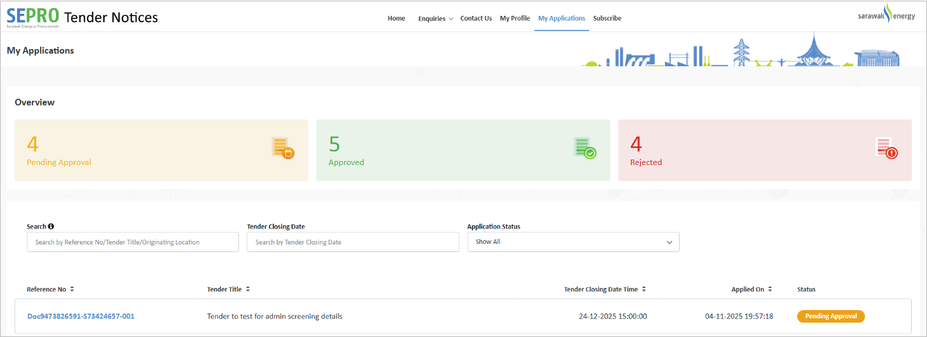 Vendors will be able to view their tender application status and act upon rejected requests.