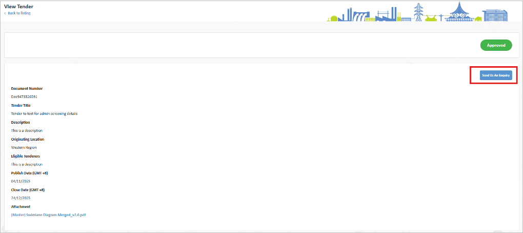 Vendors will be able to send enquiries to our helpdesk using the interface provided in our Tender Notice System.